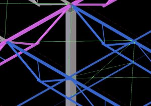 Dach hali ma spadek 2% i opiera się na układzie rygli dachowych zaprojektowanych w postaci dźwigarów kratowych o rozpiętości 24m. Wysokość dźwigarów kratowych dochodzi do 1,97m, rozstaw 6m. Podciągi zaprojektowano w postaci dźwigarów kratowych o rozpiętości 12,0m i 24,0m, oba rodzaje o wysokości 1,74m. Całkowita powierzchnia obiektu 28 800m2.
