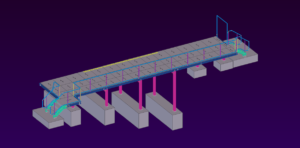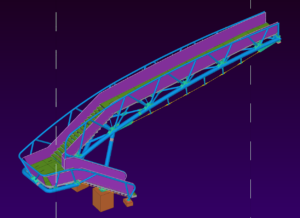 The project deals with the construction of stations and related objects of the bobsleigh track of the Dolní Morava Ski Resort. After completion it should be the longest bobsleigh track in the Czech Republic. This is also reflected in the extent of the service facilities. The load-bearing structures are mainly made of hot-dip galvanized steel structures on reinforced concrete foundations. Specifically, the extension of the boarding station, service and access bridges and bean stores with the preparation for the installation of handling technology were modeled. Furthermore, the top station accessories, cash register with adjacent scooter store and a snowcat garage with adjacent service platform. There is a great emphasis on aesthetics throughout the area. Due to the weather conditions of the mountain environment, it was very disadvantageous to choose a welded coated structure, so the choice fell on a hot-dip galvanized construction. Taking into account the aesthetics already mentioned, atypical shape-intensive okulibe joints were created in uncovered parts. For example, a SO03 connecting bridge. In other cases, it was necessary to optimize the steel structure as much as possible for further professional continuity, such as laying the tire. However, this rather routine matter was disrupted by the architectural element of the collapsed roof surface in the adjoining slanted wall with a rounded corner. So that the wall surface of the roof surface continues smoothly.