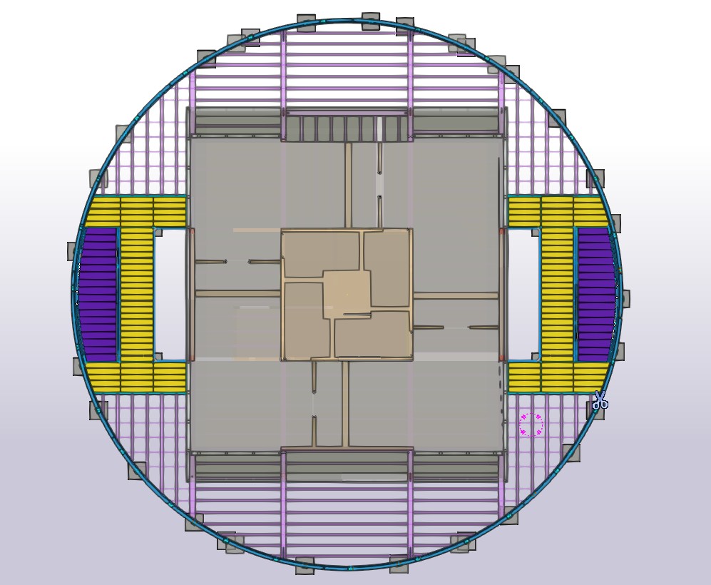 • De dragende structuur, waarbij houten balken overspannen van een CLT-kern naar drie stalen ringen zonder tussenliggende dragende muren.