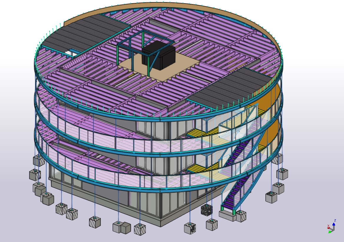The combination of steel and wood, the subtle integration into the landscape and the circular ambitions make this building a real eye-catcher. Every detail – from the curved stairs to the recycled roof slates – radiates care, innovation and sustainability. Thanks to the use of Tekla Structures, this complex, circular project can be realized with extreme precision.