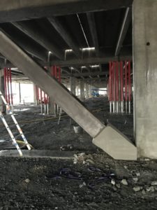 The Tekla Structures program helped confront the challenges that designers had to face. 3D modeling has helped them design and optimize the content of high walls, which had to be adapted not only to the changing environmental conditions occurring in the parking part facility space, nut also to numerous openings for egample ventilation or electrics. The project started with a model of one of the 17 meter long reinforced concrete columns, for which a test transport and assembly were made. The software has helped to precisely determine the center of gravity and the distribution of forces. After the positive result of the trial assembly, modeling of the whole structure was started, dividing the model into work areas and assigning a unique series to each designer, so as to avoid losing part of the job after numbering. The program also enabled efficient coordination by using and updating IFC references. This project was the first model where the newer version of the program was used and a new insertion tool for standard components of accessories and reinforcement, which was made by the IT department. Implementation turned put successfull and these tools are still being used today.