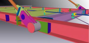 The M.0.01 footbridge is part of the Gdańsk office building complex, which is being built in Gdańsk, located at Okopowa, Hucisko, Sienna, Rakow. The 30.0 m span is supported on one of the storeys and is additionally suspended to the upper storeys by brands embedded in iron and hangers. The footbridge needed to have freedom of work by providing full rotattion on hangers.