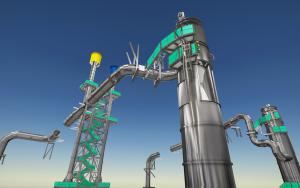 – U výstupu spalin v místě Flare Headu dochází pomocí tří hořáků ke spálení případných škodlivých látek. Okolní konstrukce je navržena na 400°C