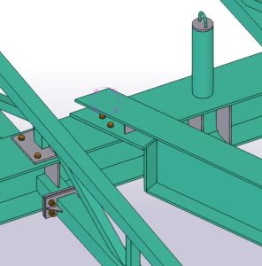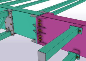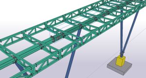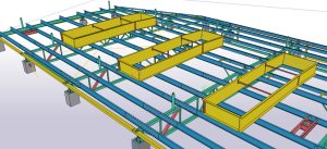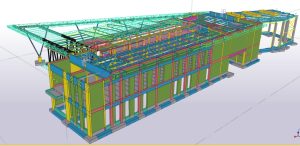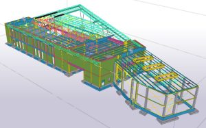 Prezentowany model jest projektem konstrukcji nowej siedziby dla firmy CoBouw Polska Sp. z o.o. Budynek składa się z części socjalno-biurowej i hali magazynowej. Nad głównym wejściem do budynku zaprojektowano zadaszenie w konstrukcji stalowej.
