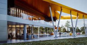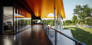 The model presented here is a design for the construction of a new headquarters for CoBouw Polska Sp. z o. o. The building consists of a social and office part and a warehouse hall. A steel-framed canopy was designed over the main entrance to the building.