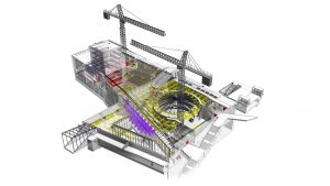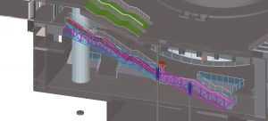 The subject of the project is the extension and reconstruction of the Polish Theater in Szczecin. The author of the construction design is the Atelier Loegler Architekci architectural office, while the Fort Polska design office has developed an detailed design of the architecture and structure. The design issue consists of two separate parts: reconstruction and modernization of the historic part of the theater and the design of the new part of the facility with an area of approximately 7,900 m2. The newly designed part of the theater is mainly located in the adjacent area. The architectural design, the design of the reinforced concrete and steel structure was made in a 3d environment, the steel structure design was made in Tekla Structures. Particularly noteworthy is the construction of the dome with a diameter of 18m located above the Shakespearean stage. An interesting element in terms of architecture and construction are the stairs in the foyer. Completion of construction is scheduled for 2022.