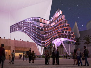 Projekt „Stretto” stanowi złożoną, rzeźbiarską strukturę zadaszenia, zaprojektowaną jako integralny element przestrzeni publicznej w ramach założenia OCVibe. Obiekt pełni funkcję reprezentacyjnej strefy wejściowej przed budynkiem Concert Hall, jednocześnie będąc wyrazistą formą architektoniczną łączącą estetykę z zaawansowaną inżynierią.