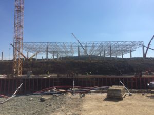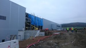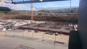 Samostatné objekty sprinklerovny a venkovních přístřešků a schodišť jsou navrženy z žárově zinkované oceli s železobetonovými základovými konstrukcemi.