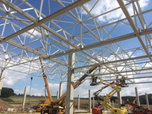 The project concerns the extension of the existing production plant Evobus Holýšov in the Czech Republic. The production plant is focused on the production of bus bodies. The extension includes a complex of several new industrial buildings and the modification of the existing production hall. The load-bearing structures consist of a combination of steel and reinforced concrete. The design, production and assembly documentation of steel and reinforced concrete structures has been completely completed in the Tekla Struktures program. The largest building is the new SO40 production hall. The SO40 building is connected to the SO40 building and interconnection with the existing SO20 hall. The existing SO20 steel hall has been preserved and is adapted to the new requirements. The project also includes a stand-alone SO31 office, sprinkler halls and small outdoor staircase and shelter buildings.