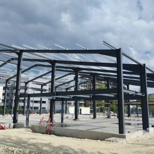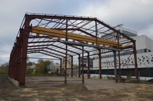 Rehabilitation and extension of an existing metal building in the port of Bordeux, France.