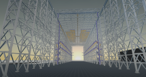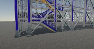 – konstrukcję stalową ścian hali w tym: słupy kratowe dolne, słupy kratowe górne, słupy pośrednie, stężenia ścienne pionowe, stężenia ścienne poziomie