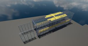 Mechanical gates on both „fronts“ of the hall – the eastern gate allows for the free passage of the crane. The western gate with dimensions enabling free entry of individual sections of floating units and their launching. On the northern wall, a gate measuring approx. 5x5m.