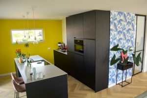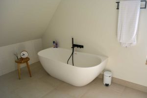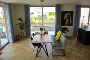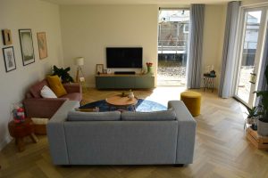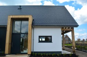 Het betreft een fris huis met veel natuurlijke materialen, zoals eiken spanten, stucwerk en houten gevelbekleding. Op de vloer na, die gemaakt is van steen, bestaat deze woning volledig uit houtmateriaal. De ontwikkeling rondom houtbouw is steeds populairder aan het worden onder nieuwbouwprojecten. Naast de schoonheid dat dit met zich meebrengt, is houtskeletbouw ook bevorderlijk voor de duurzaamheid. Bij houtskeletbouw wordt namelijk gebruik gemaakt van duurzame en volledig recyclebare materialen.