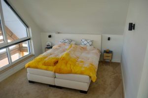 This is a fresh house with many natural materials, such as oak rafters, stucco and wooden cladding. Except for the floor, which is made of stone, this home consists entirely of wood materials. The development around wood construction is becoming increasingly popular among new construction projects. Besides the beauty that it brings, timber frame construction is also conducive to sustainability. In fact, timber frame construction uses sustainable and fully recyclable materials.