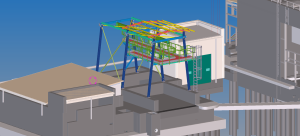 The designed hoist steel structure is a small part of a large project, which is an industrial Water Treatment Plant (WTP). The function of this structure is transport and service of the Zendra Tank over which it is located.