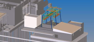 The main structure consists of HEB160 columns, which are inclined relative to the base level by 83° and HEB120 transverse beams, as well as HEB100 cantilever. They form the support for the platforms made as frames consisting of UNP120 profiles, braced with transverse beams UNP120 and L50*6 braces. The IPE360 hoist beam is suspended to HEB160 transverse beams, which are braced with L60*6 profile. The roof structure consists of main beams HEB120, UNP80 purlins as well as bracing made of L50*6 and φ16 bars. The structure of the roof is covered with trapezoidal sheet T35E with the thickness of 0.5 mm.