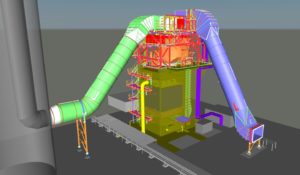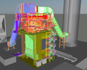 The subject of the contract was statical design and check of connections, project and workshop documentation of the steel structure and ducts for desulphurisation of the power station in Vasilikos in Cyprus. On the top of the main concrete structure for absorber is steel structure used for supporting of ducts and for service of technology. On this structure are supported two units of ducts. The third unit of duct is placed inside of concrete structure of theabsorber. On the east side of absorber is stair tower. Inside of absorber are placed auxiliary beams and frames which were mounted during concreting works. Part of the project was also extended steel structure for ESP filter placed in the north of the absorber.