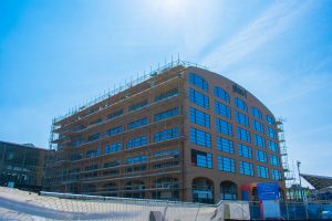 A special building, named after an 1960s train unit, with seven floors and an office space of almost 11,000 square meters. Mid-2019 VKP received a request from Van de Ven Bouw en Ontwikkeling Tilburg (a Dutch contractor) to provide the engineering and production of twelve oval dormers and the entrance portal for this project. A challenging job, because the dormers and the underlying round shaped roof had to be placed at once.