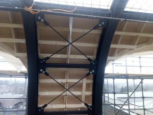 De staalconstructie werd volledig in Tekla uitgetekend. Aan de hand van de DB1-bestanden konden de dakkapellen probleemloos door ons geëngineerd worden en vervolgens middel ronde sporen geproduceerd worden. De communicatie tussen de verschillende partijen verliep via Trimble Connect en mede dankzij de BCF-bestanden konden de opmerkingen in het model eenvoudig en eenduidig uitgewisseld worden.