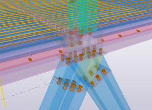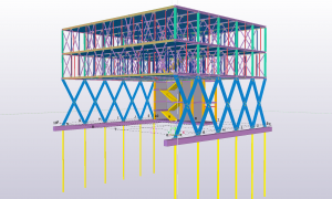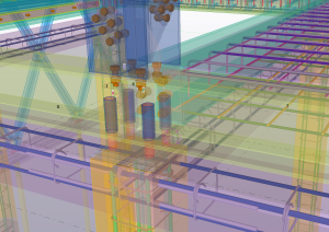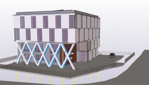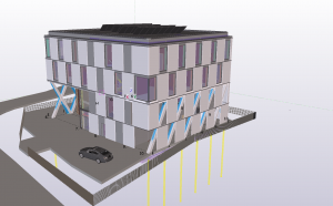 Projekt dotyczy nadbudowy istniejącego budynku biurowego o dwie kondygnacje wraz z klatką schodową i szybem windowym. Zaprojektowano przestrzenny układ stalowych ram kratownicowych nad istniejącym obiektem. Klatka schodowa wraz z szybem windowym w konstrukcji żelbetowej. Obiekt posadowiony na prefabrykowanych palach fundamentowych. Stropy w obiekcie zaprojektowano jako zespolone. Konstrukcja o wysokim stopniu prefabrykacji. Dużym wyzwaniem było dostosowanie konstrukcji do rozwiązania stropu zespolonego z blachy falistej. Oprogramowanie BIM pomogło w koordynacji między branżami oraz w szybszym i dokładniejszym rozwiązywaniu powstałych problemów, kolizji.