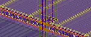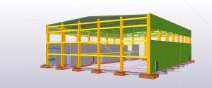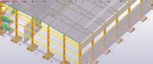 Designed for a graduation work. Project of sports hall, frame of concrete column and steel truss. I used Tekla Structures to make 3D model of construction, and to detail elements, which were calculated – profiles of truss, bracings, reinforcement in columns, beams and foundations.
