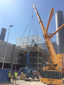 Na zemi docházelo k předmontáži konstrukce, která byla následně zvedaná na železobetonové sloupy. Nejnáročnější bylo zvedání nejdelšího pole, které přemosťuje stávající dopravníkový most.
