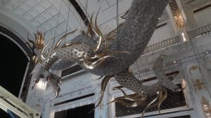 Two dragons fighting over a flaming pearl – you can find this symbol in Chinese mythology, in stories and books, and now also in its materialized, life-size form. Two giant dragons now live in the lobby of the Imperial Palace as the two biggest jewels we have ever seen. Each of them with a length of 50 meters and a strict weight limit of 20 tons per dragon. And on top of that, all of that is within an earthquake area with frequent typhoons.