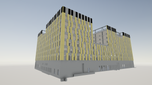 As part of the development of the new BudaPart district in Budapest, the BudaPart Central (BOIJ) office building is being constructed with a floor area of approximately 37,000 m². The structural design of the building was carried out by our office (ESIKON Ltd.) as the lead structural engineer. The building consists of 3 basement levels + ground floor + 7 upper floors, all formed from a monolithic reinforced concrete frame structure. The façade is composed of prefabricated reinforced concrete sandwich panels, manufactured by PREbeton Zrt. Our office was also responsible for the detailed shopwork drawings, completed using Tekla Structures software. The total area of the façade is 7240m2, which consists of 440pcs of panels, required 832pcs of drawings. During the production 1225m3 concrete and 825m3 isolation were used.