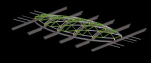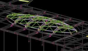 De uitdaging zat in de hoekverdraaiing van elke ligger wat heeft geleid tot enkel identieke onderdelen, die allen apart van elke moesten worden gemoduleerd en de geassembleerd. In de productie is dat ondervangen door alle verbindingen te scriben op de buisprofielen van de pendels.