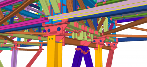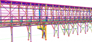 The project consisted in the design, calculation, modeling, fabrication and documentation for assembly of the structure to support the unloading of material in a dock through an open gallery and transfer towers. Tekla was used in the first moment with the import of the calculated profiles through the calculation program continuing with the detailed modeling of the whole structure incorporating reference models in dwg prepared by our client TAIM WESER, where we incorporated the machinery and applied the requirements of the project. With Tekla we have made both the workshop documentation and the assembly successfully.