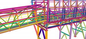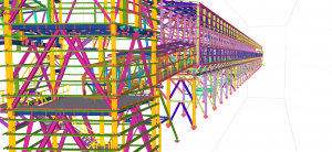 El proyecto ha consistido en el diseño, cálculo, modelado, fabricación y documentación para montaje de la estructura para soportar la descarga de material en un muelle a través de una galería abierta y torres de transferencia. Tekla se usado en el primer momento con la importación de los perfiles cálculados a través del programa de cálculo continuando con el modelado detallado de toda la estructura incorporando modelos de referencia en dwg preparados por nuestro cliente TAIM WESER, donde incorporamos la maquinaria y aplicamos los requermientos del proyecto. Con Tekla hemos realizado tanto la documentación de taller como la de montaje con exito.