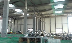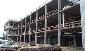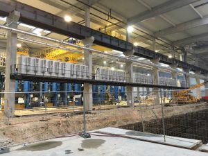 Three production lines are located in the production hall for each cross modul for which are designed reinforced concrete foundation structures of the press and technology storage chambers are provided, as well as supporting steel structures for the service technology and others. Two cross modules have a pair of cranes with a load of 72t and 60t, in the last modul is a pair of cranes with a carrying capacity of 62t and 50t. The crane tracks are also located in the Scrap building (Load Capacity 3.2t) and in the “Quality Area” (4t). The total weight of mounted steel structures is about 1900 tons, the total volume of concrete structures is about 50,000 m3.”