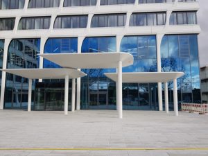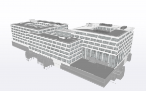 De luifelelementen van de entree van het gebouw zijn erg bijzonder gezien de vorm. Deze vorm is namelijk niet standaard en zorgde daardoor gedurende het proces voor meerdere uitdagingen. De architect heeft de hoofdvorm van het luifelelement vanuit het ontwerpmodel in een IFC bestand verstrekt. Byldis Engineering heeft deze geometrie in Tekla geïmporteerd en vervolgens het luifelelement uitgewerkt, zodat het element ook productietechnisch uitvoerbaar is. Door het team is gecommuniceerd middels de 3D modellen. Voor het wapeningsnet is het wapeningsprincipe van de constructeur vertaald naar een compleet wapeningsmodel. Op basis hiervan is voor de productie van de wapening de machine geautomatiseerd aangestuurd.