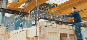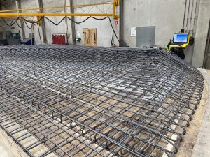 The canopy element of the entrance to the building is very special in terms of its shape. This form is not standard and therefore caused several challenges during the process. The architect provided the main shape of the canopy element from the design model in an IFC file. Byldis Engineering has imported this geometry into Tekla and then further developed the canopy element so that it is technically feasible in terms of production. The team communicated through the 3D models. For the reinforcement mesh, the rebar principle of the structural engineer has been translated into a complete reinforcement model. Based on this model, the machine was automatically driven for the production of the reinforcement.