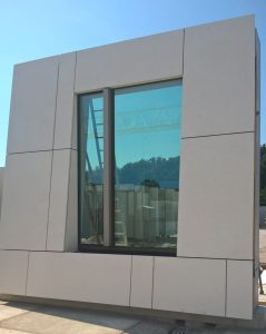 Except for his prominent location, Hourglass has other special features: except for the in situ stability cores nothing is straight in the Hourglass design. From the third floor the facades are built from prefab panels, developed by Byldis Prefab and Byldis Facades. The principle of M-shaped panels is used from the bottom to the top of the building, but every prefab panel that is used, is different. For example because of embeds, thickness or plate division. Besides all this, the finishing of the panels is absolutely luxurious. The whole exterior of the building is made of Turkish limestone. Marble stone which is assembled in the prefab factory in Tilburg, just like the aluminium frames and glazing. The fact that we execute the biggest part of the marble stone elevation in prefab sandwich panels is revolutionary. The panels will be assembled on site with two tower cranes. All this is only possible because of the good cooperation between Hurks bouw, Byldis prefab and Byldis Facades.