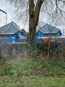 Vervolgens hebben wij de dakelementen van toren 1 op de juiste positie geplaatst voor toren 2. Op de juiste hoogte geplaatst en vervolgens met hulp van de mogelijkheden wat Tekla te bieden heeft, de kreupele stijlen te stretchen naar de gewenste hoogten.