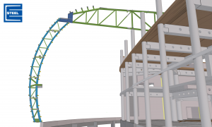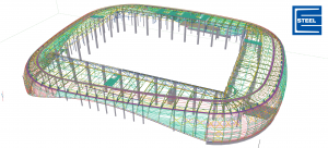 E-Steel Mérnöki Kft. has been commissioned for this project by CÉH zRt. for the execution design phase and ARC-S Engineering and Design Kft. for the factory design phase. The project is under construction in Tatabánya, Hungary, it is a sports hall. E-Steel Mérnöki Kft.’s task was the structural and factory design of the “pebble” shaped outer shell support structure, CÉH zRt. performed the design tasks of all the other disciplines and provided general structural design supervision and coordination.