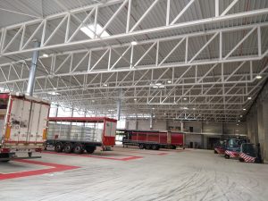 During this project, we installed steel trusses of 54 meters, prefabricated concrete columns of 16 meters and prefabricated lift shafts of 20 tons.