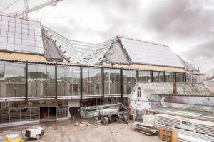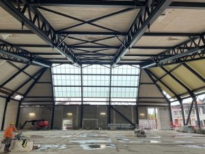 Commissioned by main contractor CIT Blaton, De Wandeler, as a steel construction company, was responsible for the detailed engineering of the connections, the complete development, production and assembly of the complex steel structure. The greatest technical challenge was realizing the large spans in the two exhibition halls—measuring 40 x 40 meters and 20 x 40 meters respectively—with the distinctive suspended roof of the Scala Grande connecting the two halls. The Scala Grande, which connects the two large exhibition halls on the first floor, forms an open, transparent, and accessible element on the ground floor. The design is inspired by the sightlines of iconic Bruges monuments such as the Belfry and the Church of Our Lady, creating a visual connection with the new city park adjacent to BRUSK. It embodies the vision of a museum integrated into the city. The suspended roof of the Scala Grande is a steel structure that hangs like a hinge between the two halls. The steel trusses consist of welded T-profiles on which the glass roof dome rests.