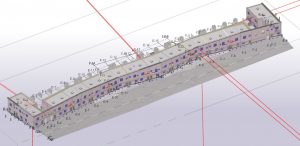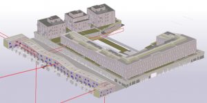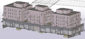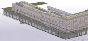 By working in BIM, different cuts can immediately be made. This is useful because the floor plate is offset from +1 at block BCD. As a result, the anchoring must be at different heights and not all panels are identical. When working in 2D this would be much more difficult because there is not a section view everywhere. At the balconies, the gargoyle can also be drawn in the correct place, as the balustrade is also drawn in BIM. This avoids errors on site, which benefits speed and costs.