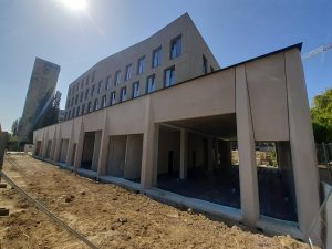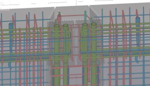 Een ander voordeel van werken met een BIM model is dat de klant kan meekijken met bijvoorbeeld Microsoft Teams om zo meteen probleempunten aan te pakken. Zo waren de wanden van de traphallen in eerste instantie als prefab voorzien. Echter konden de gevelpanelen niet op deze manier verankerd worden. Hierop werd er gekozen om de wanden ter plaatsen te storten en de gevelpanelen mee aan te storten. Omdat het bordes niet opgelegd kon worden, werd dit ook meteen mee aangestort.