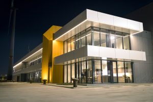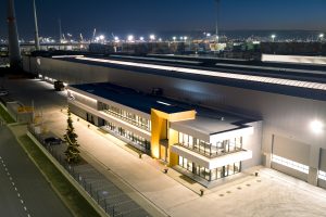 In addition, fire domes and ventilation are integrated for optimal safety. The new warehouses and offices are constructed from concrete plinths in combination with sandwich panels and steel deck. The entire building was additionally insulated to ensure pleasant working conditions all year round. The new offices have an area of approximately 1,000 square meters. Here the aesthetic was an important aspect. Offices require more detail than a warehouse or studio. “Here too, concrete formed the basis, but we opted for a combination with facade cladding and aluminum.