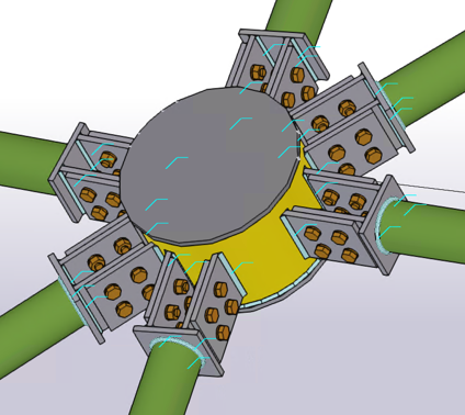 A tervezést Rhino Grasshopper használatával végeztem el, melyben először a kupola geometriáját készítettem el parametrikus módon. Ezt követően szabványosan leterheltem a globális szerkezetet, majd a kupolán topológiai és szelvényoptimalizációt végeztem az Octopus többcélú evolúciós alapú optimalizáló eszközzel. A globális statikai analízist Karamba3D szoftverrel végeztem, mely segítségével a vasbeton lemezek vasalását is optimalizáltam. Ezután egy kapcsolati modellt dolgoztam ki a kupola mértékadó csomópontjaira, majd a lokális analízist IdeaStatica programban végeztem el. Miután mind a globális, mind a lokális modell méretezése megfelelt, a geometriát átvittem Tekla Structures programba, melyben egy általános elrendezési tervet készítettem a szerkezetről és a tervezett csomópontról.