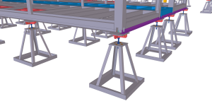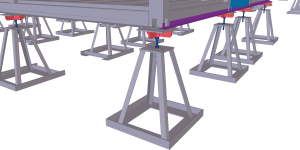 The foundation of the building is on permafrost, and it was necessary to develop anchoring with the help of rectifying volume changes in the permafrost, especially the support drops. For this purpose, the construction of the so-called “Tripod” was developed, which enables both horizontal rectification in all directions, as well as height rectification.