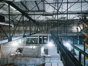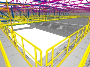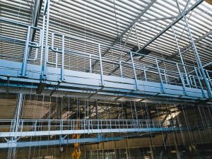 Do konstrukcji dachu podwieszono stalowe pomosty techniczne.