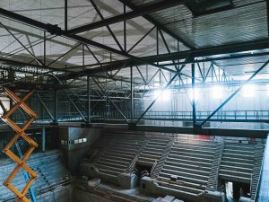 The maximum number of spectators in the stands in the main hall will be approx. 5,069 seats, including approx. 26 seats for the disabled in wheelchairs. In addition, a training room was designed with a stand for approx. 121 seats. The total number of seats in the stands in the sports and entertainment hall is approx. 5,210.