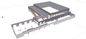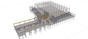 Voor het gebouw werd gekozen voor een combinatie van een beton- en staalstructuur. Enerzijds werden elementen van de betonstructuur (kolommen, balken, volle en geïsoleerde betonwanden, predallen) uitgewerkt tot productietekeningen voor onze eigen productiesite Van Maercke Prefab NV. Hiervoor beschikt Stadsbader NV over een eigenontwikkelde planningstool die in Trimble Connect de status van elk element in beeld brengt. Anderzijds werden de verschillende ifc-modellen overgebracht aan diverse producenten van onder andere de holle wanden, voorgespannen holle vloeren, breedvloerplaten, trappen en staalstructuur.