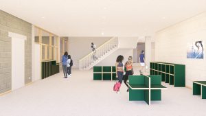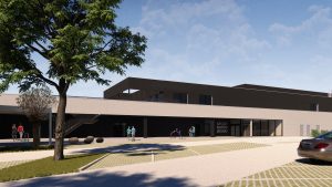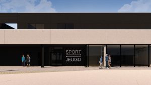 The complex consists of a sports hall with cafeteria and houses the youth and sports service. It has a total floor area of 7,700m². Stadsbader nv is responsible for the overall project and takes care of the structural work, technical aspects, finishing and landscaping.