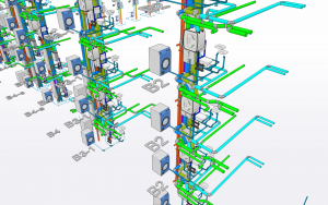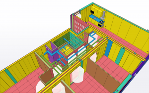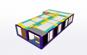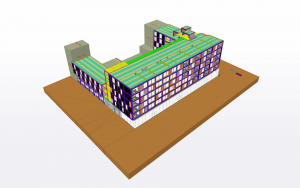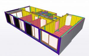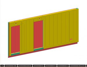 De software in Tekla heeft het mogelijk gemaakt om dit in z’n geheel te modelleren. We hebben specifieke software laten maken: een plugin om bijvoorbeeld de complexe samenstelling van de wanden met onder meer driedubbele bekleding te kunnen tekenen. Tekla bracht de knelpunten in de modellen van de verschillende partijen goed in beeld. Galerij-ankers van de leverancier moet perfect aansluiten op ons model voor de modules en opbouw. Door samenwerking in het model waren we in staat om dat naadloos op elkaar te laten aansluiten. Ook kunnen we dankzij het model een compleet materialenpaspoort samenstellen om op te nemen in Madaster (o.b.v. NLSFB-codering).