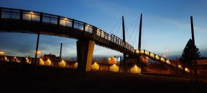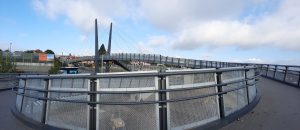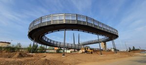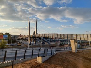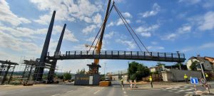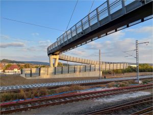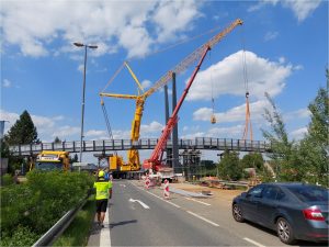 The new footbridge, designed by SUDOP PRAHA, a.s., represents an out-of-level connection of the pedestrian road in K Dráze Street (Plzeň-Bručná) and Na Lipce Street (Plzeň-Koterov). The footbridge bridges two transport corridors – the I/20 road and four tracks of the railway line, which includes the railway line Gmünd – České Budějovice – Plzeň. The length of the bridge is 154 m with a total length of 202 m. With regard to the required crossing profile over the road and the electrified railway line, it was necessary to design the descent of the footbridge from a height of approx. 7.5 m above the terrain after crossing the railway down to the Koter abutment with an acceptable longitudinal slope. This problem was solved by a curved ramp, also with regard to the limited plan space at Na Lipce Street. The footbridge was designed for pedestrian loading with the LM4 loading model, i.e. 5kN/m2, reduced with respect to the length of the loaded footbridge in accordance with ČSN EN 1991-2. The clear width of the footbridge is designed to be 3.0 m.
